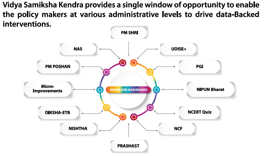 Vidya Samiksha Kendra (VSK) is a state-of-the-art data monitoring center that leverages real-time analytics to improve learning outcomes and strengthen school governance. By integrating data from various educational platforms, VSK helps policymakers, administrators, and teachers make informed decisions to enhance the quality of education and ensure accountability at every level.